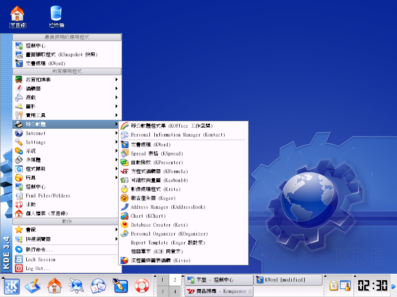 您也许会发现 KDE 简直可以和MS Windows 抗衡,它的办公室软件功能齐全,不论是 KWord、KExcel、KPowerPoint 都是威力强大的软件。