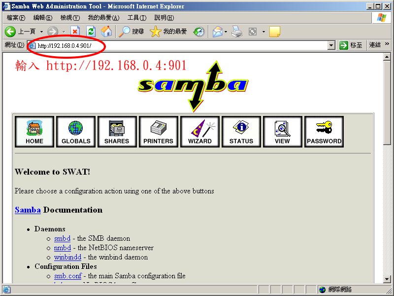 在 swat 的首面中,有很多说明文件的连结供您参考。