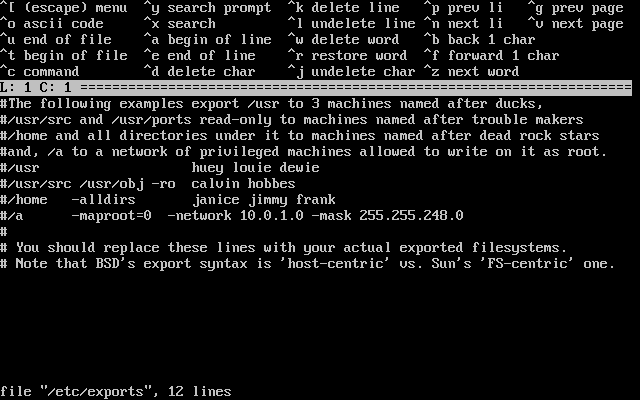 按 Enter 键继续。系统会启动文本编辑器让您编辑 exports 文件。