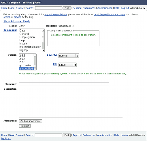 Bugzilla: Enter Bug: GIMP