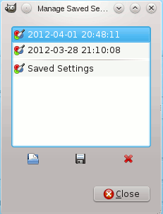 The cross: clicking on this cross opens a window where you can save current settings under the name you want.