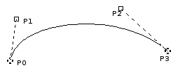 The image above shows a Bézier curve. Points P0 and P3 are points on the Path, which are created by clicking with the mouse. Points P1 and P2 are handles, which are automatically created by GIMP when you stretch the line.