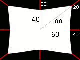 A 160x120 pixel image, plain white displacement map, and displacement coefficient 20.0: this results in a 20 pixels displacement towards center. This is a horizontal reduction in size by 25%, vertical by 33%, and diagonal by 20%, so the image will be distorted.